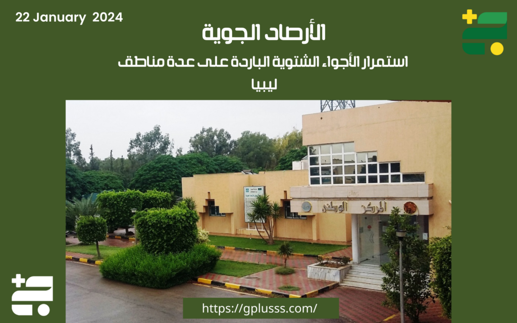 توقع مركز الارصاد الجوية أجواء باردة على معظم مناطق ليبيا مصحوبة بسقوط أمطار متفرقة على مناطق الشمال ومن المتوقع أن تكون جيدة على المناطق الممتدة من الخليج إلى الجبل الأخضر.
