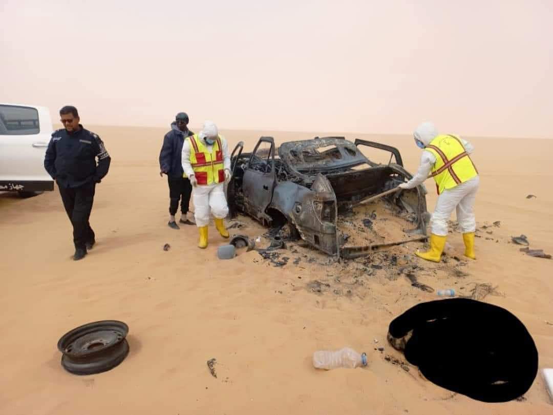 انتشل جهاز الإسعاف والطوارى الكفرة، 4 جثث متفحمة من الجنسية السودانية.