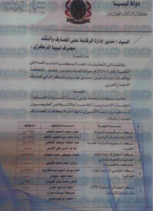 تحصلت صحيفة صدى الاقتصادية على مراسلة مكتب النائب العام إلى مصرف ليبيا المركزي