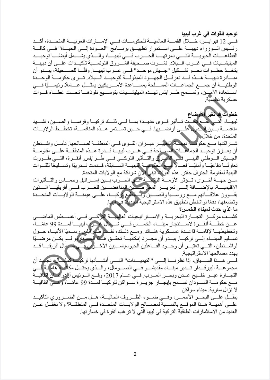 ويشارك عبد الحكيم بايو، المرشح الرئاسي، رأي العديد من الباحثين الليبيين. ويعتبر أن “ هذا النشاط الأمريكي المكثف في طرابلس يهدف إلى مواجهة الوجود الروسي قرب المعسكر الشرقي الليبي ”. من جانبه، يضع السياسي محمد المزوغي، هذه التطورات في إطار “ منظومة أمنية عالمية تهدف إلى إبعاد الميليشيات عن مكان القرار السياسي ” قبل تنصيب حكومة وحدة وطنية جديدة.