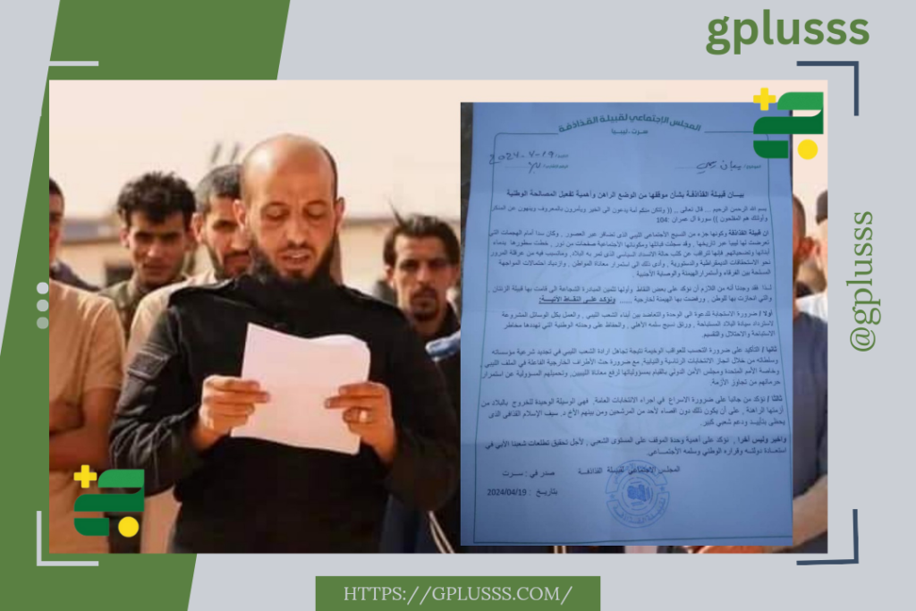 وأضاف البيان، أن قبيلة القذاذفة وكونها جزء من النسيج الاجتماعى الليبي الذي تضافر عبر العصور، وكان سدا أمام الهجمات التي تعرضت لها ليبيا عبر تاريخها، وسجلت قبائلها ومكوناتها الاجتماعية صفحات من نور خطت سطورها بدماء أبنائها وتضحياتهم، لتراقب عن كثب حالة الانسداد السياسي الذي تمر به البلاد.