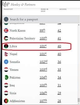 كشف مؤشر هينلي العالمي ل جوازات السفر، أن ليبيا ضمن أسوأ 10 جوازات سفر حول العالم لعام 2024.