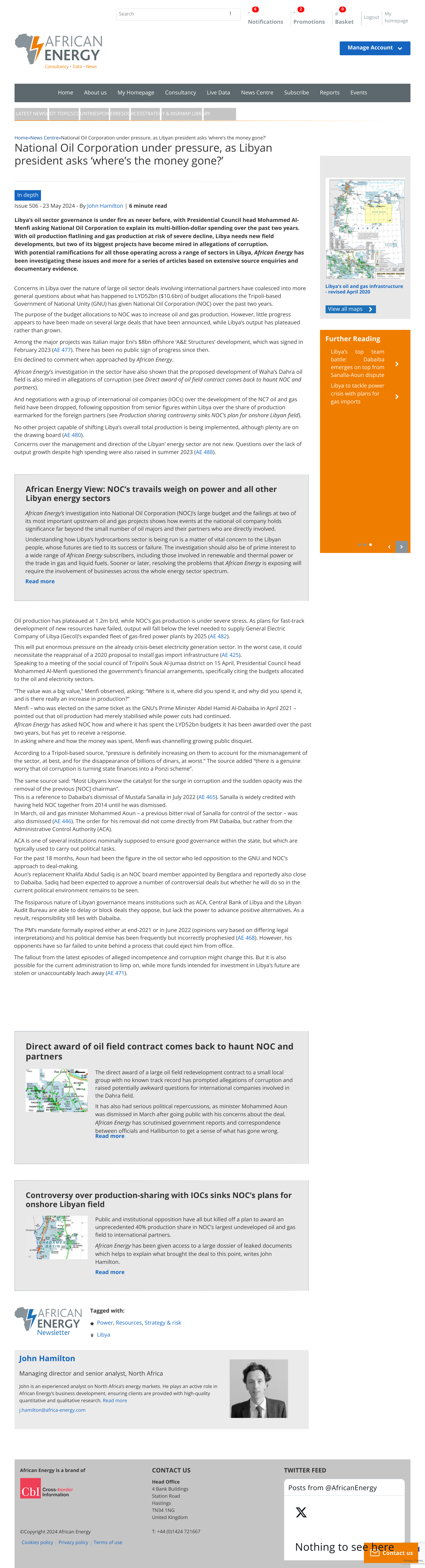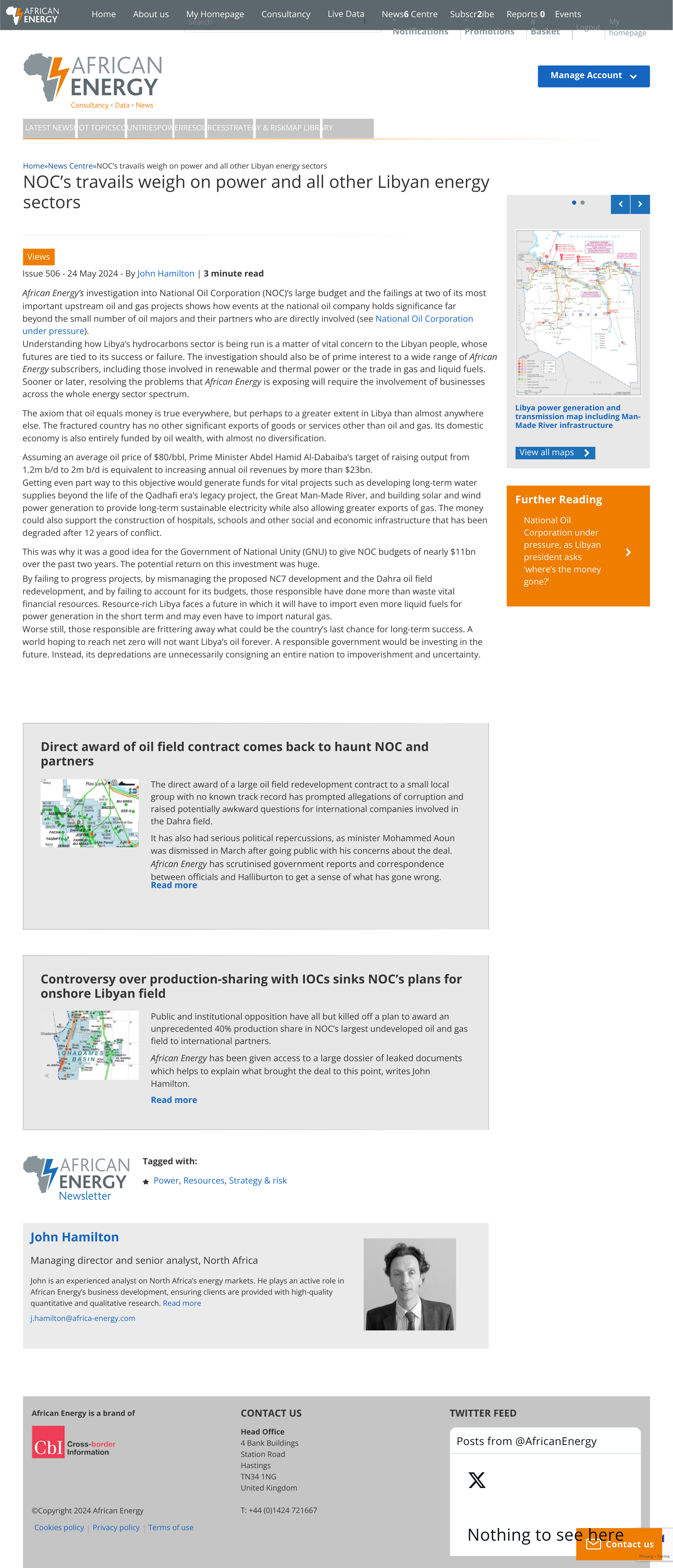وأوضح التقرير، الذي طالعه وترجمه “ج بلس”، أنه على مدى السنوات السبعة عشر الماضية، قدم جون هاملتون، المدير الإداري لشركة African Energy، تقارير مفصلة ومتعمقة عن قطاع الطاقة في ليبيا بما في ذلك جميع جوانب قطاعات النفط والغاز والطاقة الكهربائية.
