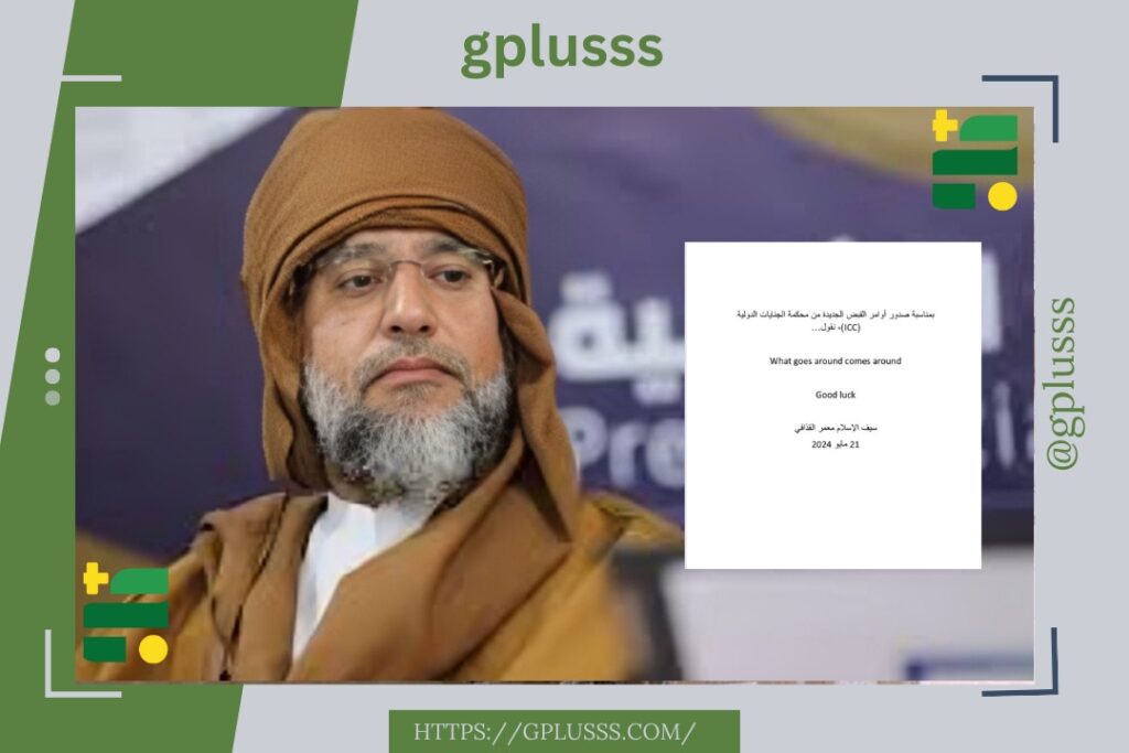 يأتي تعليق نجل القذافي بعد أيام من إعلان المدعي العام للمحكمة الجنائية الدولية كريم خان أنه طلب إصدار مذكرات توقيف بحق رئيس الوزراء الإسرائيلي بنيامن نتنياهو، ووزير دفاعه يوآف غالانت، ورئيس المكتب السياسي لحركة حماس في غزة يحيى السنوار، وقائد كتائب القسام، الجناح العسكري للحركة، محمد دياب إبراهيم (الضيف)، ورئيس المكتب السياسي للحركة إسماعيل هنية.
