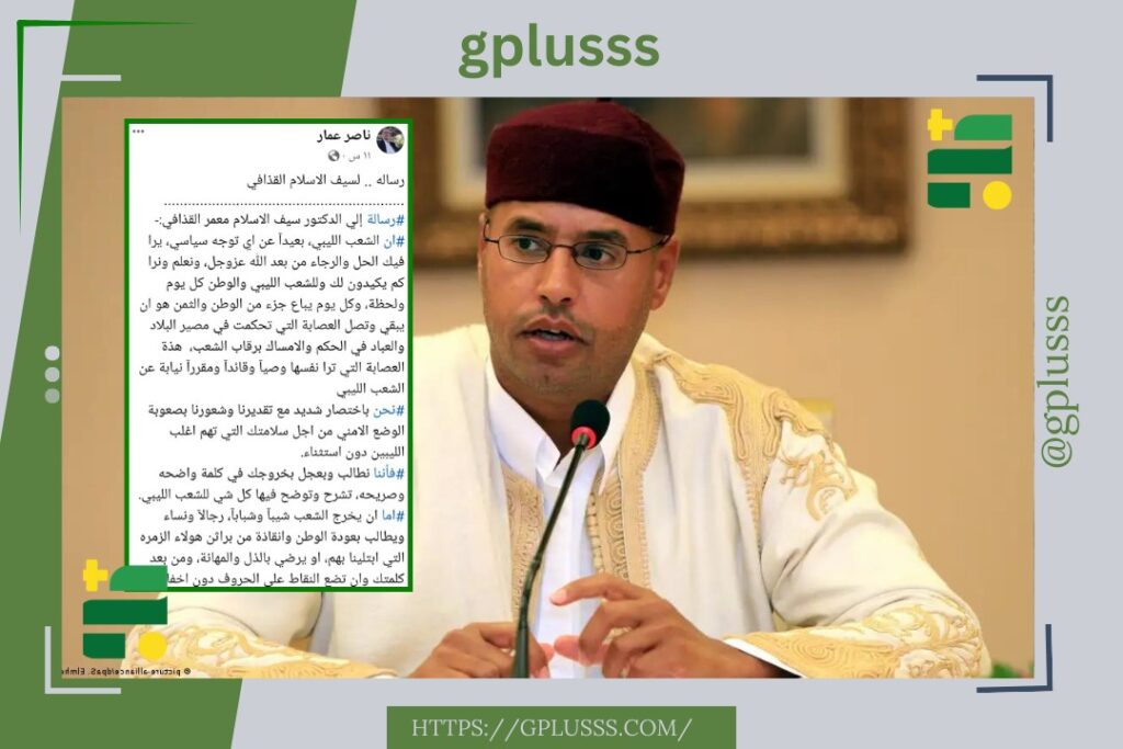 تحت عنوان «أنت الحل والرجاء من بعد الله عز وجل».. أرسل آمر قوة الإسناد بعملية بركان الغضب ناصر عمار، رسالة للدكتور سيف الإسلام معمر القذافي.