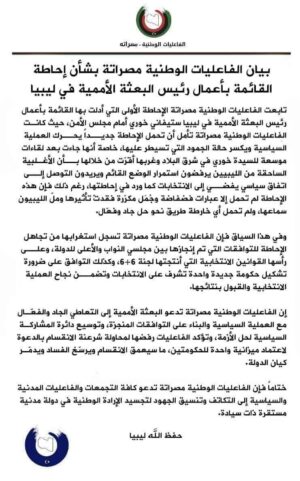 وأشارت الفاعلية إلى أن الإحاطة لم تحمل إلا عبارات فضفاضة، وجُمل مكررة، فقدت تأثيرها، وملَّ الليبيون من سماعها، ولم تحمل أي خارطة طريق نحو حل جاد وفعال.