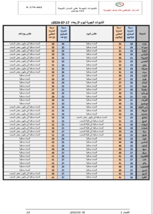 درجات الحرارة القصوى: تتراوح ما بين 40 –41مْ.