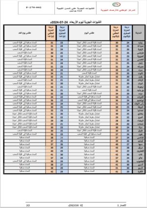 درجات الحرارة القصوى: تتراوح ما بين 37–42مْ على أغلب المناطق.