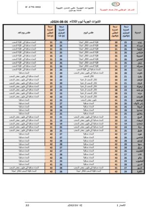درجات الحرارة القصوى: تتراوح ما بين 40–42مْ.