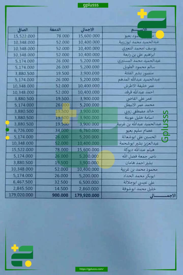 ويكشف مستند رسمي آخر عن وجود تلاعب في الأرقام المدرجة في المستند، خاصةً في عمود “الصافي”، لزيادة المبالغ المستحقة لبعض الأسماء على حساب الآخرين.