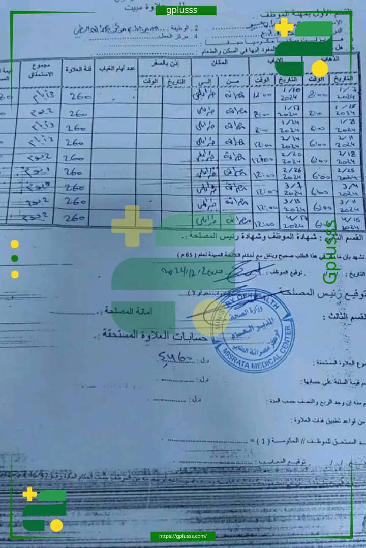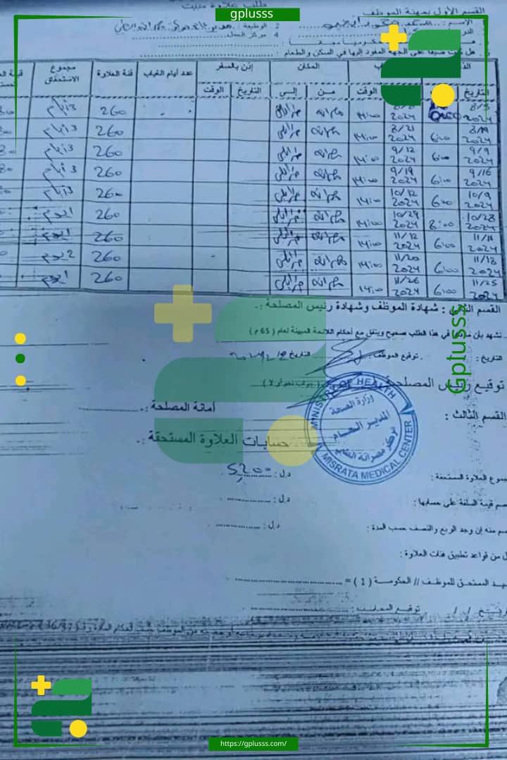 وتتكامل فصول الفساد في مركز مصراتة الطبي، حيث يوضح أحد المستندات وجود تلاعب في عدد أيام الغياب أو في فئة العلاوة المستحقة، مما يؤدي إلى زيادة المبلغ المستحق بشكل غير قانوني.