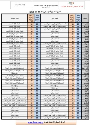 درجات الحرارة القصوى: تتراوح ما بين 36-42مْ وتسجل تراجعا يوم الغد.