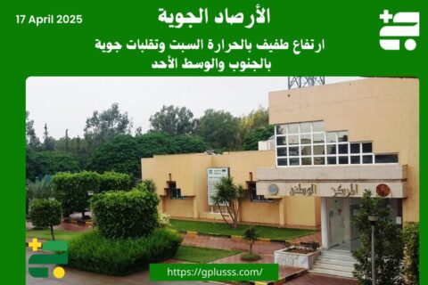أعلن المركز الوطني للأرصاد الجوية إدارة التنبؤات الجوية، ارتفاع تدريجي في درجات الحرارة على معظم مناطق البلاد ،حيث الحرارة القصوى تتراوح مابين (30-35)مْ على المناطق الساحلية ومابين (37-41)مْ على مناطق